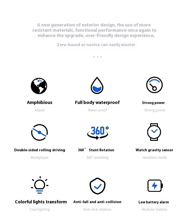 ✔ 360° Tumbling & Stunt Skills – Flips, spins, and rolls with smooth remote control.